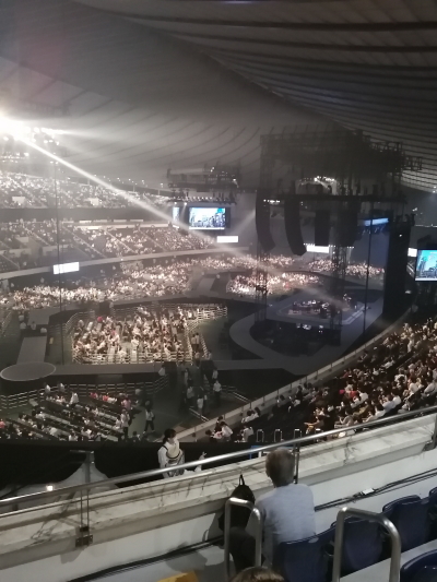 西武ドームは初めてでした。ライブ開始時の明るさから徐々に日が暮れていくに従って暗くなっていく感じが半野外の感じで他の会場にない演出の様で良かった。