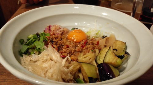 即、行先変更!「鶏そば ソルト」へ。こちらも結構混んでいました。「台湾まぜそば」を頂きました。もっと辛くても良いかと。ラー油も私には物足りません。